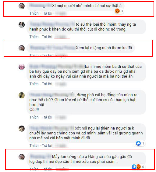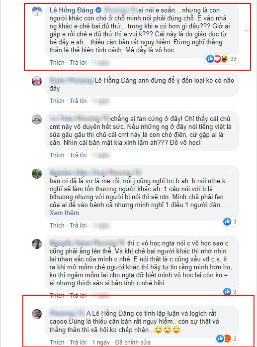 Chứng minh mình cũng không phải dạng vừa, antifan này còn không ngần ngại công kích lại những người tấn công mình: "Mấy fan cứng của anh Đăng cứ sủa gâu gâu để làm cái gì. Đẹp thì nói đẹp xấu thì nói xấu sao phải xoắn".