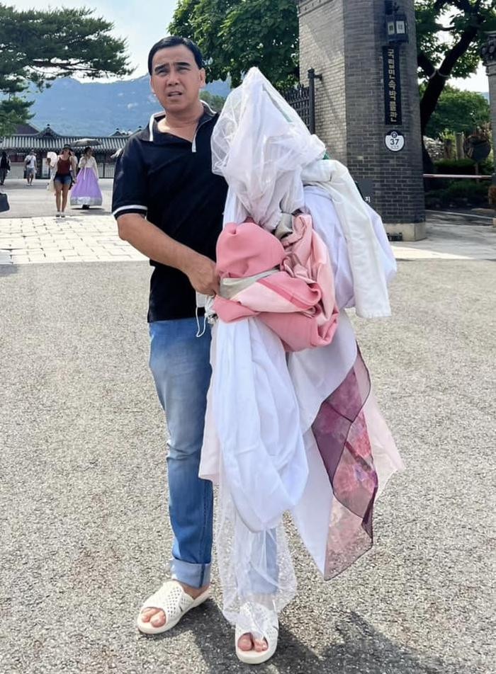 Đáng chú ý, dưới bài viết, nam MC tiết lộ đằng sau bức hình đẹp của gia đình là hậu trường cười ra nước mắt. Đúng chuẩn ông chồng quốc dân, MC Quyền Linh không ngại làm chân giữ đồ cho các bóng hồng bung lụa. Anh viết: "Để có những bức ảnh đẹp luôn phải nhớ ơn người chưa được đẹp".