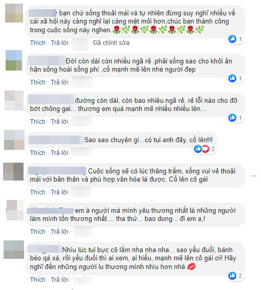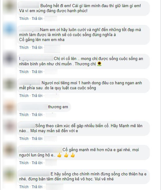 Có vẻ như sau một thời gian dài chịu đựng sự khắt khe và xét nét của số đông khán giả, sức chịu đựng của Nam Em đã đến giới hạn. Rất nhanh chóng, bạn bè đồng nghiệp cùng đông đảo người hâm mộ đã liên tục gửi đến cô những lời động viên, an ủi, khuyên cô rằng chỉ cần sống đúng là mình và không nên quan tâm đến những gì người khác nghĩ về mình.