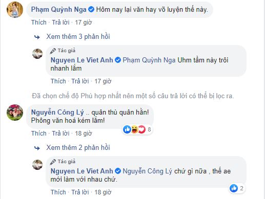 Phía dưới bình luận, khi có người hỏi: "Tưởng bạn ngấm mấy vụ này lâu rồi chứ?", Việt Anh đáp: "Nhìn thấy ngày càng nhiều nên giật mình bạn ơi, dù đã rất quen".