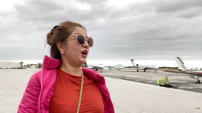 "Hiện tại, tôi đang đứng tại một sân bay dành riêng cho những người có máy bay riêng. Họ sẽ để máy bay của họ ngay tại đây. Xung quanh chỗ tôi đứng đều là máy bay tư nhân dành cho những người giàu có, có tiền mua về tự lái hoặc cho thuê lại.