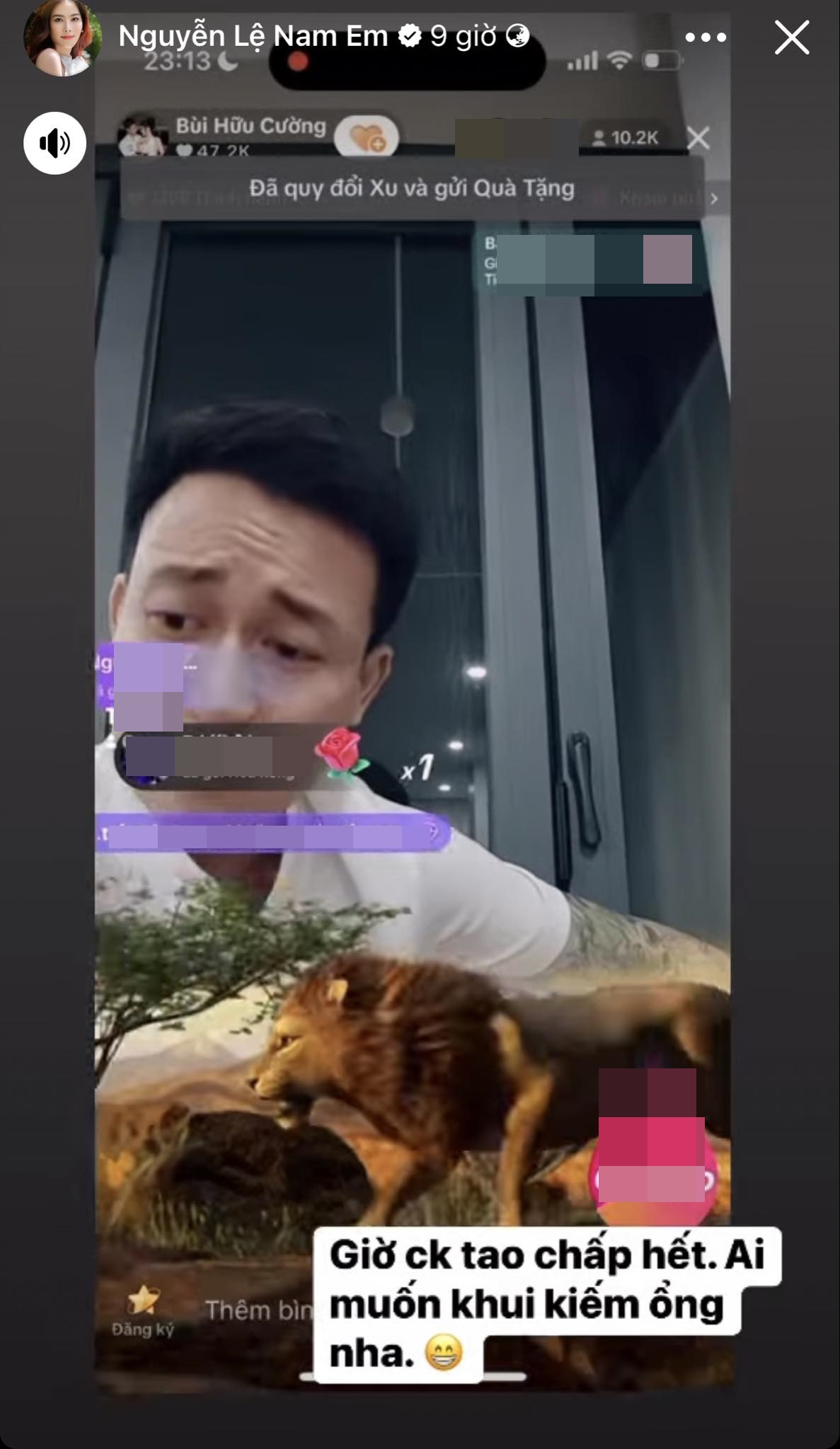 Tuy nhiên, sau lời thông báo đó, Nam Em lại tiếp tục nói: "Giờ chồng tao chấp hết. Ai muốn khui thì kiếm ông ấy nha".