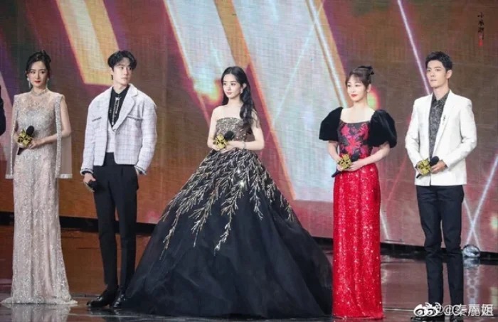 Nhưng vị trí trung tâm đã thuộc về Triệu Lệ Dĩnh, Dương Mịch chỉ được đứng ở rìa ngoài. Có thể thấy thời điểm này Triệu Lệ Dĩnh đã có bứt phá lớn trong sự nghiệp. Nữ diễn viên gây tiếng vang lớn với loạt tác phẩm nổi tiếng như Hoa Thiên Cốt, Minh Lan Truyện,...