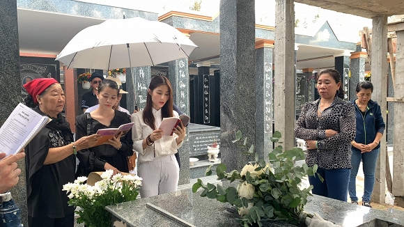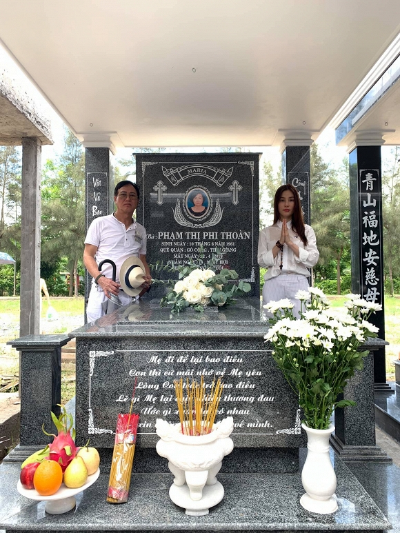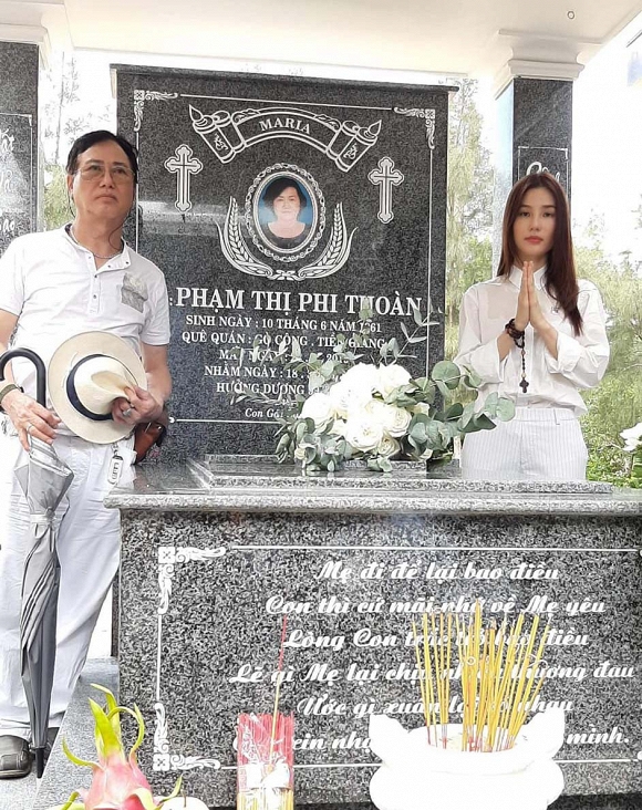 Thời gian thoăn thoắt trôi, mới đây đã tròn 49 ngày mất của mẹ nữ diễn viên Diễm My 9X. Cô cùng người thân ra tận mộ viếng và đọc kinh cho mẹ mình. Ngôi mộ của mẹ Diễm My 9X đã được xây tươm tất và khang trang. Hình ảnh khuôn mặt hiền từ và đôi mắt buồn của mẹ cô được gắn trên bia mộ không khỏi khiến người viếng xót xa.