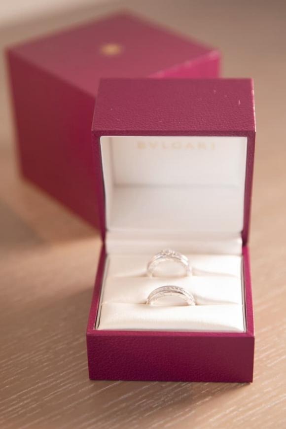 Cặp nhẫn cưới B.Zero của Minh Hằng và ông xã doanh nhân trao nhau trong hôn lễ là dòng nhẫn biểu tượng của thương hiệu Bvlgari - thương hiệu được mệnh danh là Nhà kim hoàn của các ngôi sao thế giới. Chiếc nhẫn bạch kim đính hạt kim cương của cô dâu hiện đã cháy hàng trên toàn thế giới. Minh Hằng phải yêu cầu thương hiệu chính hãng tại Việt Nam đặt trước cho mình từ nhiều tháng trước.