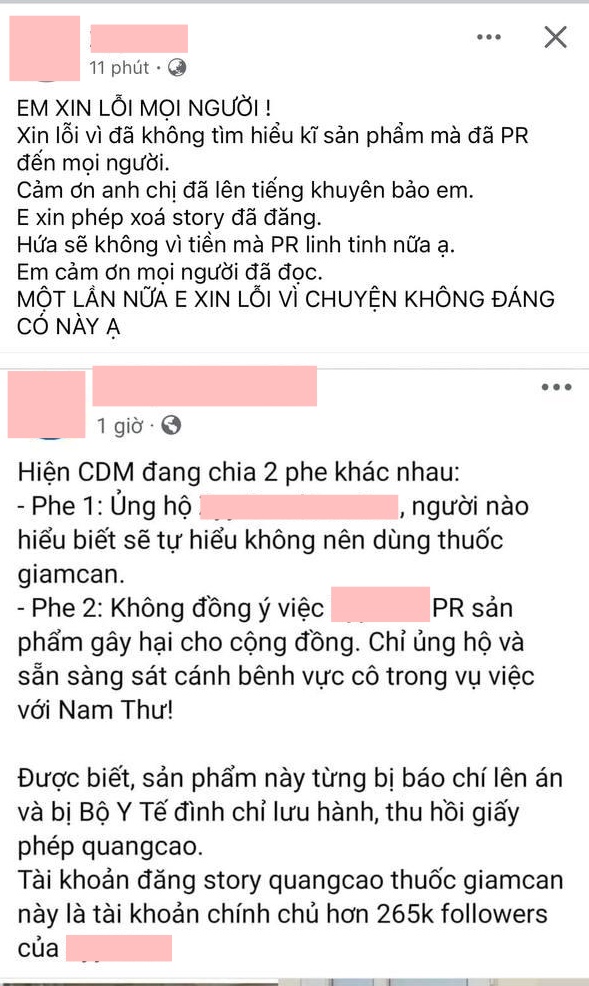Giữa lúc cư dân mạng bàn tán xôn xao, chủ tài khoản Z.D lên tiếng xin lỗi. Cụ thể, cô thừa nhận sai trong việc không tìm hiểu kỹ sản phẩm mà đã đăng bài quảng cáo trên trang cá nhân. Cách giải quyết được Z.D đưa ra là xoá bài đăng liên quan đế thuốc giảm cân, hứa hẹn sẽ rút kinh nghiệm. "Bước ra từ một cuộc hôn nhân đổ võ đã là tổn thương nhiều rồi. Nếu không nói được gì tử tế, xin đừng cạnh khoé em ạ, em cảm ơn", tài khoản Z.D chia sẻ. Đồng thời, người này cho biết lý do đăng bài bán hàng là muốn kiếm thêm kinh tế ổn định cuộc sống, có tiền để thuê luật sư hỗ trợ trong các phiên toà sắp tới.