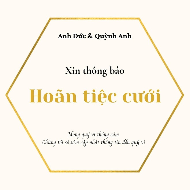 Anh Đức và Phạm Quỳnh Anh mong nhận được sự thông cảm từ khách mời, cặp đôi cho biết sẽ cập nhật thông tin về lễ cưới sau đó.