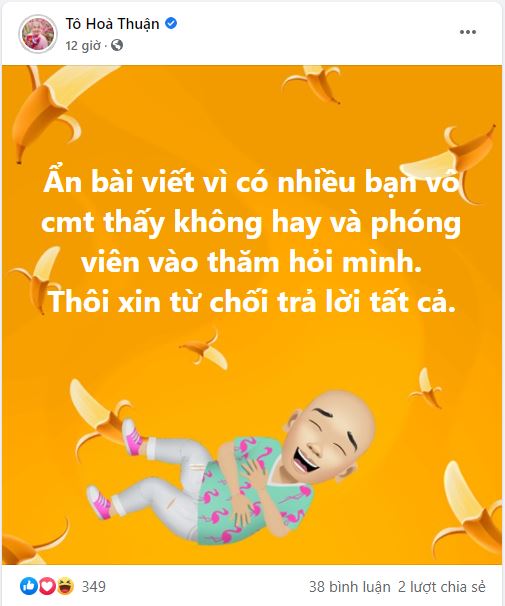 Ở diễn biến mới nhất, Quốc Thuận đã gỡ bài đăng xuống và cho biết sẽ từ chối trả lời thêm về vấn đề này. Mặc dù vậy, cư dân mạng vẫn đang xôn xao bàn tán về mối quan hệ giữa nam diễn viên và ông chủ Điền Quân.