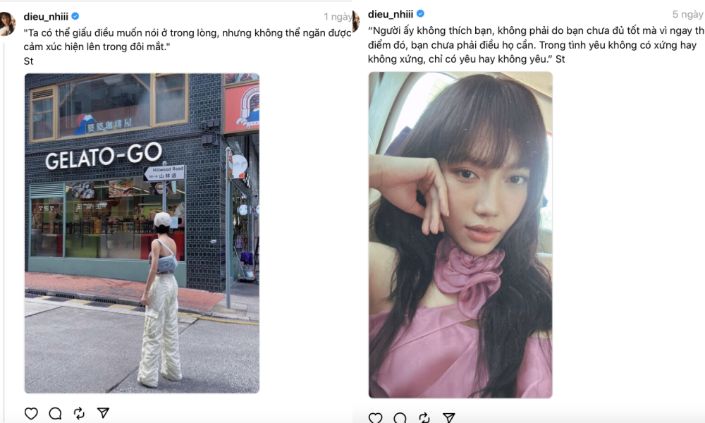 Cụ thể, xuyên suốt hơn 1 tuần qua, Diệu Nhi liên tục đăng tải những dòng trạng thái đầy tâm tư về việc cuộc sống, tình yêu. Đồng thời, bà xã Anh Tú không chia sẻ ảnh vui vẻ, nhí nhố như trước kia mà thay vào đó là những bức ảnh có màu sắc trầm tư. Diệu Nhi vốn là người hài hước và lầy lội nên thái độ thay đổi 180 độ trên mạng xã hội đã làm rộ lên nghi vấn cô và Anh Tú đang gặp trục trặc.