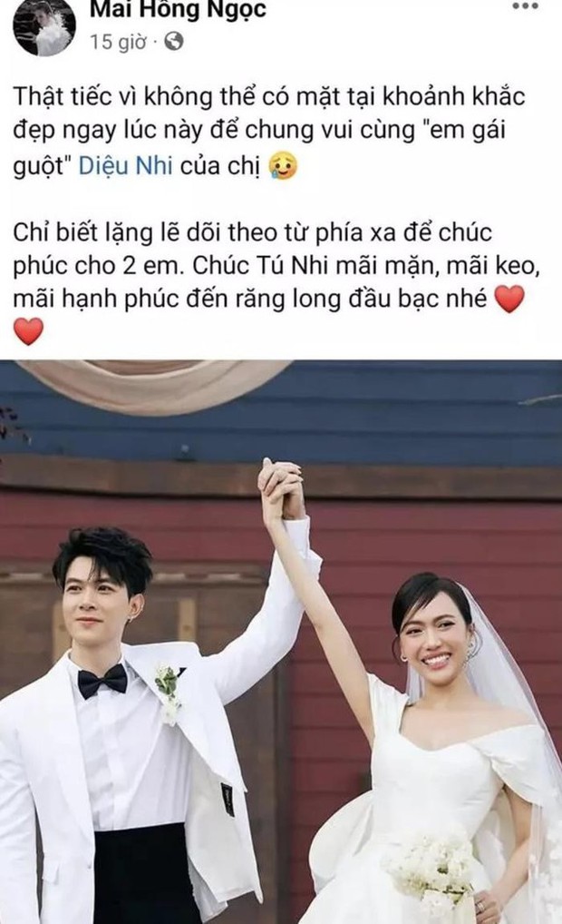 Vào ngày 21/12, dàn sao trong showbiz Việt như vợ chồng Trấn Thành - Hari Won, Trường Giang - Nhã Phương, Hoa hậu Tiểu Vy, Mai Phương Thuý... đã hội ngộ ở đám cưới của Diễm My 9x và bạn trai doanh nhân Vinh Nguyễn. Cặp đôi "chị chị em em" Đông Nhi và Diệu Nhi cũng xuất hiện tham dự ngày trọng đại này.