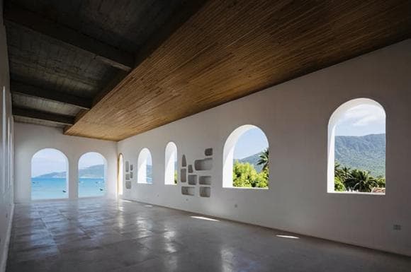 Đại gia Đức An cho biết, tòa nhà ra đời từ sự kết hợp ý tưởng: Tái hiện vẻ đẹp cổ điển trong kiến trúc Địa Trung Hải và hình ảnh cầu vồng - theo hình dung từ con gái anh. Công trình nổi bật với tông màu trắng và những khung cửa vòm mang phong cách Địa Trung Hải. Bên cạnh đó, khu nhà của vợ chồng Phan Như Thảo còn nổi bật nhờ các khối kiến trúc vuông. Được biết, khu nhà có 8 căn phòng nhỏ để lưu trú, mỗi phòng đều có cửa sổ lớn ngắm cảnh biển, đồng thời các phòng được thiết kế tối giản, hạn chế bày biện đồ đạc, xây nội thất gắn tường tạo không gian mở.