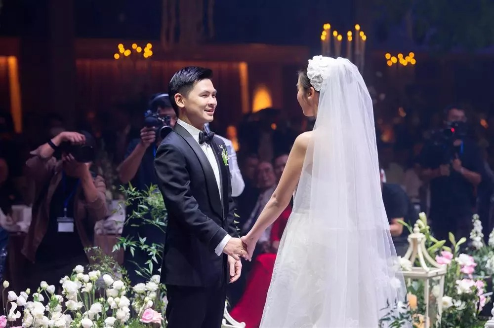 Đỗ Mỹ Linh không đi giày cao gót khi mặc váy cưới nửa tỷ, Đỗ Vinh Quang đi giày độn đế trong đám cưới để cải thiện sự chênh lệch chiều cao giữa 2 người.