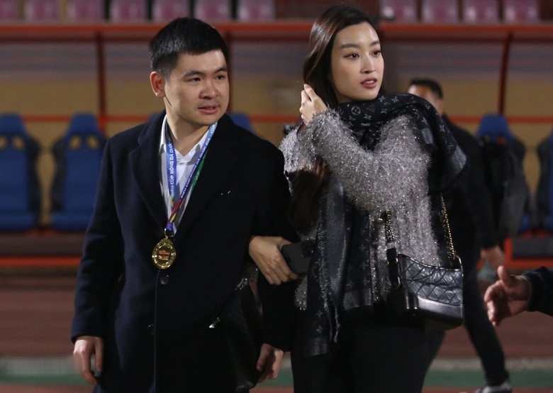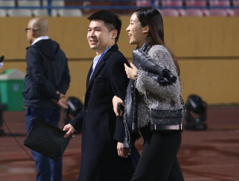 Trong khi đó, cũng xuất hiện tại sân Hàng Đẫy cùng bầu Hiển và con trai ăn mừng chức vô địch của CLB, mẹ chồng của Đỗ Mỹ Linh - bà Lê Thanh Hòa cũng trở thành tâm điểm khi diện trang phục sang chảnh. Phu nhân của bầu Hiển diện một chiếc áo khoác đắt đỏ, khẳng định đẳng cấp "phu nhân hào môn".