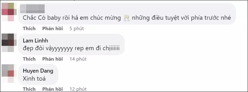 Ngưỡng mộ hạnh phúc của cặp đôi, cư dân mạng cũng chú ý tới vòng eo Đỗ Mỹ Linh. Qua hình ảnh, không ít netizens đặt nghi vấn chân dài Hà thành đang mang thai đầu lòng.