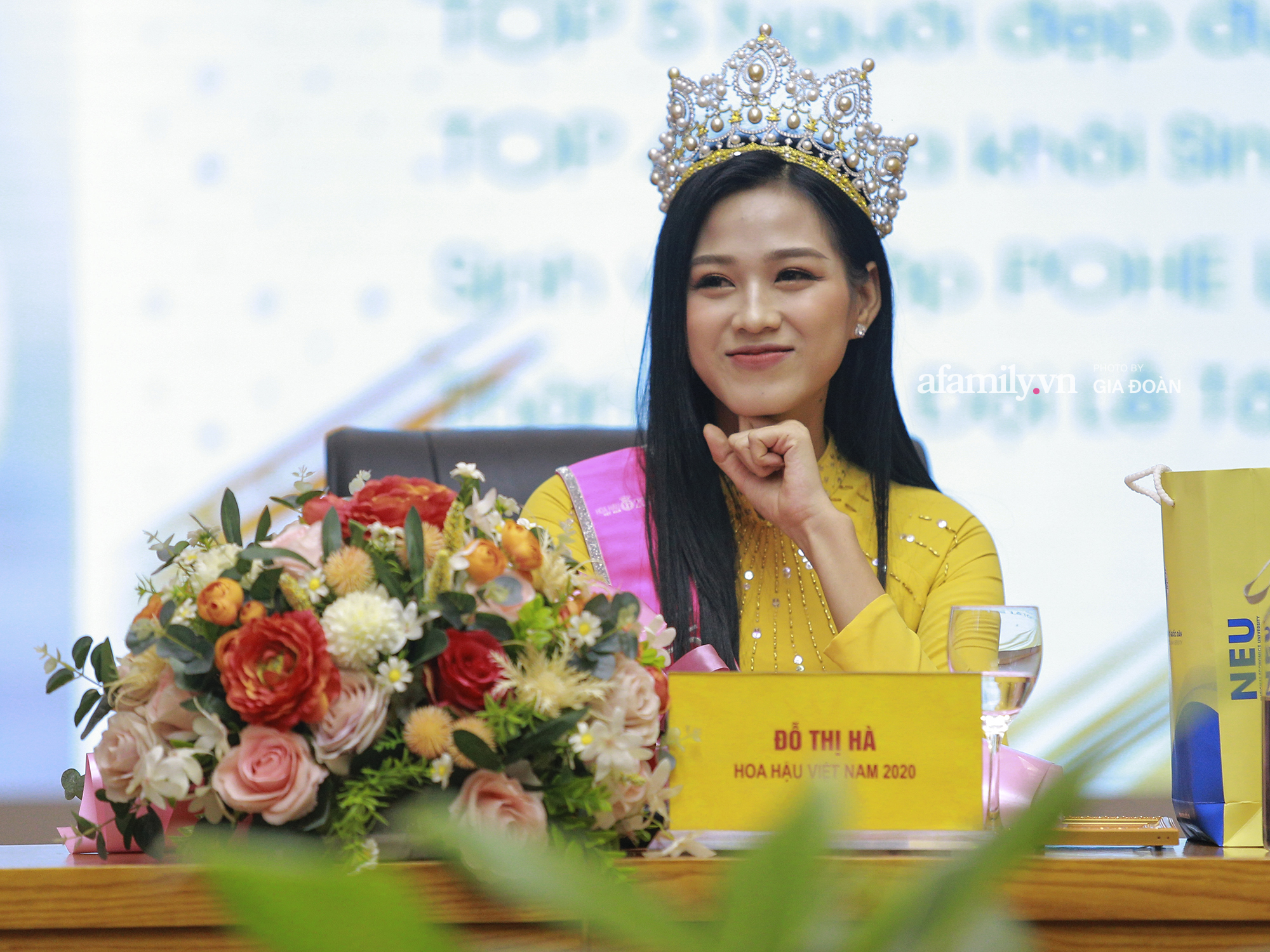 Sáng 8/12, Tân Hoa hậu Việt Nam 2020 Đỗ Thị Hà đã có mặt tại trường Đại học Kinh tế Quốc dân. Đây là lần đầu tiên Đỗ Thị Hà quay trở lại trường học gặp thầy cô giáo cùng bạn bè sau khi đăng quang ngôi vị Hoa hậu Việt Nam 2020.