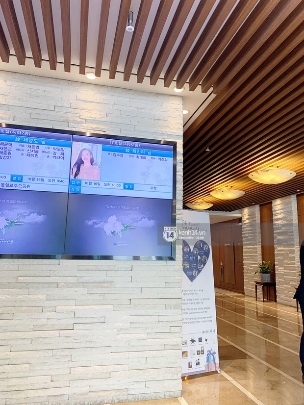 Theo thông tin từ tờ Spotvnews từ tối qua, tang lễ của cố diễn viên/ca sĩ Sulli sẽ diễn ra vào hôm nay ở bệnh viện Severance thuộc Đại học Yonsei, Sinchondong, quận Seodaemun, Seoul. Vào hồi 11:25 sáng nay (theo giờ Hàn), theo ghi nhận thông tin độc quyền của chúng tôi tại chính nhà tang lễ của bệnh viện Đại học Yonsei, Hàn Quốc, lễ nhập quan và lễ viếng linh cữu của Sulli sẽ không diễn ra vào hôm nay mà chính xác vào 10:00 sáng mai (16/10).