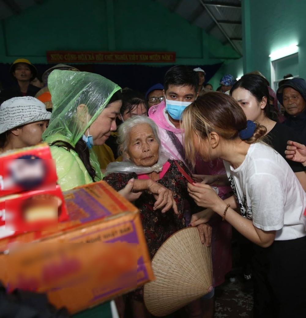 Trên trang Facebook cô chia sẻ: "Hiện tại trời mưa càng lúc càng lớn hy vọng không bị sạt lở hay vỡ đập nữa. Cầu mong thiên tai qua sớm để bà con trở lại cuộc sống bình thường".