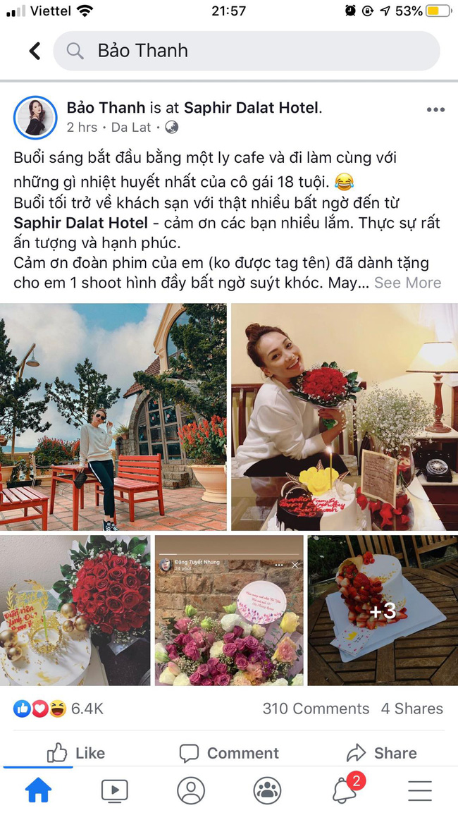 Bên cạnh đó, người hâm mộ cũng chú ý tới lời chúc mừng sinh nhật của "em út" Bảo Hân tới "chị gái" Bảo Thanh. Bảo Hân viết: "Chúc mừng sinh nhật người em thương. Chúc chị luôn có sức khoẻ để bước thật dài trên con đường mình đã chọn và làm thật tốt gặp thật nhiều may mắn trong cuộc sống, xinh đẹp và ngày càng xinh đẹp hơn nữa.