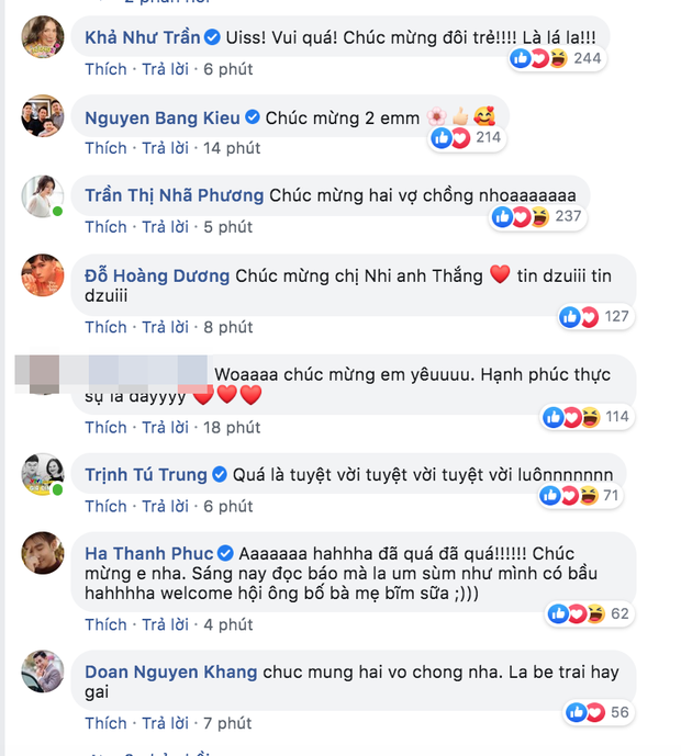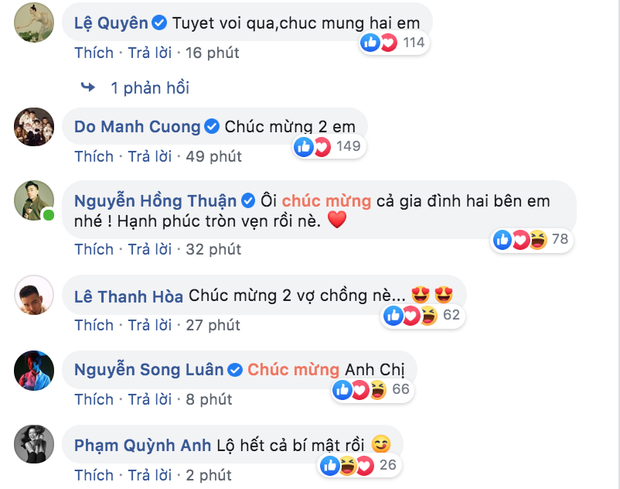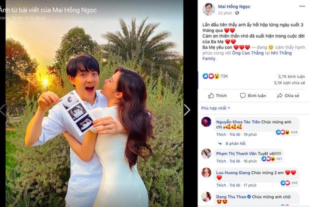Chỉ sau hơn 10 phút đăng tải thông tin này trên trang cá nhân, hình ảnh hạnh phúc của Đông Nhi và Ông Cao Thắng đã thu về lượt tương tác khủng với hơn 70K like, hơn 5K chia sẻ và hàng chục nghìn bình luận chúc mừng. Không chỉ có thế, các bài đăng thông báo tin vui trên các diễn đàn công cộng cũng nhận được sự quan tâm rất lớn.