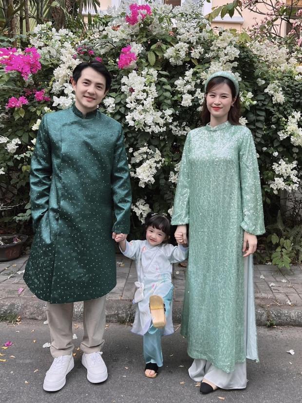 Thời gian gần đây, Đông Nhi nhiều lần bị soi vòng 2 lùm lùm khi lộ diện ở sự kiện hay chụp ảnh đời thường. Tuy nhiên, nữ ca sĩ chờ đợi qua 3 tháng đầu thai kì mới thoải mái chia sẻ niềm vui với người hâm mộ. Trong loạt ảnh mừng Xuân, Đông Nhi diện áo dài rộng, tạo dáng che khéo vóng dáng hiện tại.