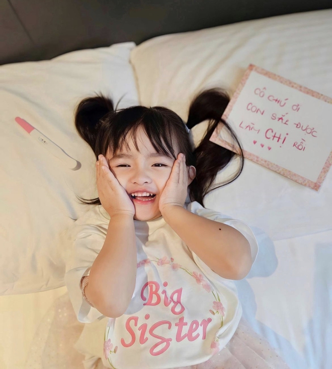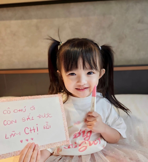 Chiều ngày 14/2, giữa lúc hàng loạt cặp đôi đồng loạt đăng ảnh tình tứ để ăn mừng Valentine thì Đông Nhi - Ông Cao Thắng gây sốt khi xác nhận sắp chào đón thêm thành viên mới. Trên trang cá nhân, nữ ca sĩ khoe ảnh bé Winnie cầm que thử thai của mẹ và 1 tấm bảng có dòng thông báo: "Cô chú ơi, con sắp được làm chị rồi". Nhìn biểu cảm của Winnie thể hiện rõ niềm hạnh phúc, hào hứng khi được lên chức.