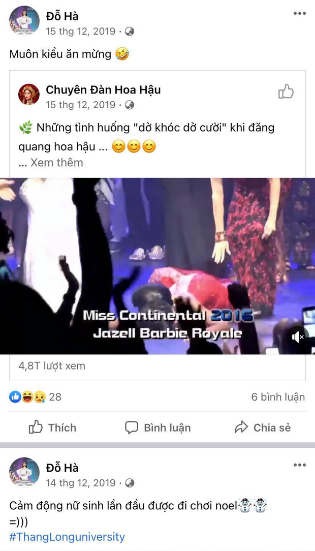 Có lẽ, do lường trước được áp lực lớn từ dư luận, tân Hoa hậu Đỗ Thị Hà đã khóa tài khoản Facebook lại. Được biết, đây là Facebook cô đã dùng từ rất lâu, khi còn học cấp 2. Trên trang mạng xã hội này, nàng Hậu cũng lưu giữ rất nhiều bức ảnh kỉ niệm hay những chuyến đi xa cùng bạn bè.