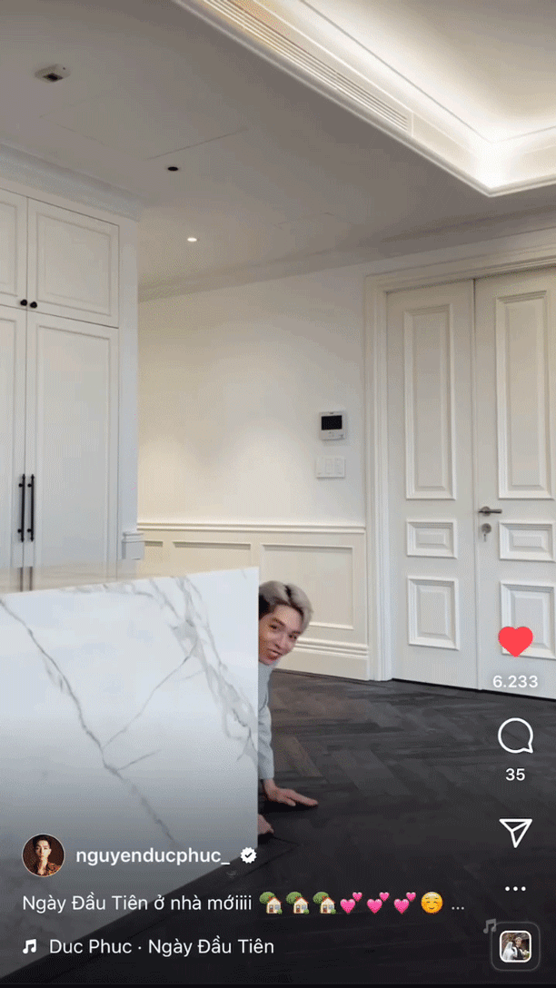 Trong loạt khoảnh khắc này, nam ca sĩ sinh năm 1996 không thể giấu nổi niềm hạnh phúc và phấn khích khi khám phá ngôi nhà mới. Anh chàng đi khắp nơi trong căn hộ để chụp ảnh từng góc trong nhà với nụ cười rạng rỡ trên môi. Người hâm mộ không khỏi trầm trồ, ngưỡng mộ trước căn bạch dinh rộng rãi, không phải dạng vừa của giọng ca 9x.
