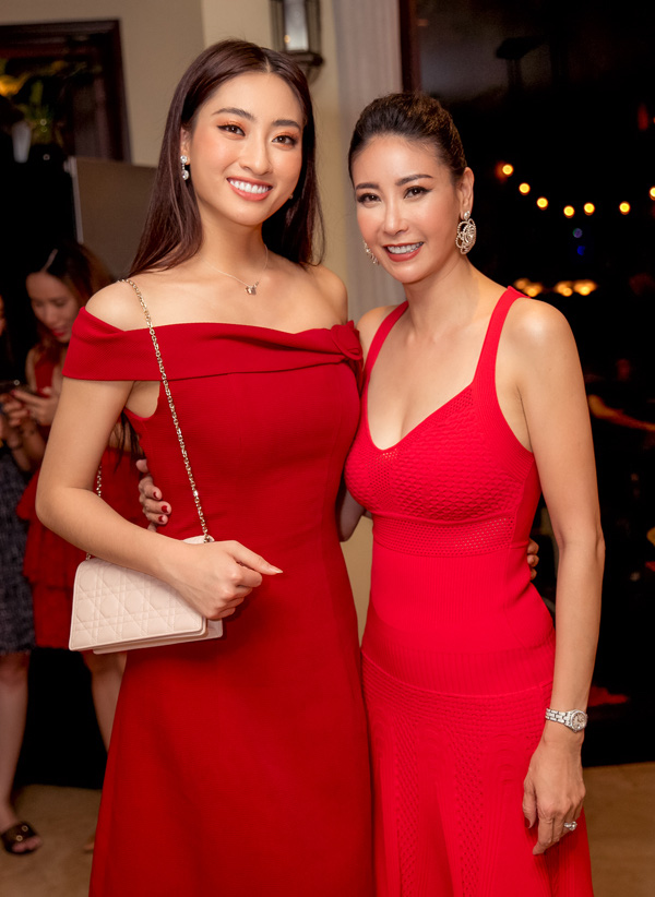 Đến chung vui cùng hoa hậu là những gương mặt rất nổi tiếng và quen thuộc của giới doanh nhân cũng như showbiz Việt. Buổi tiệc có sự hiện diện của doanh nhân Thủy Tiên, doanh nhân Thùy Dương, cô bạn gái "chấy giận" diễn viên, nhà sản xuất Trương Ngọc Ánh, người em thân thiết nghệ sỹ múa Linh Nga, cựu siêu mẫu Vũ Thu Phương, Tân hoa hậu Lương Thùy Linh, ca sĩ Quốc Thiên, gia đình đạo diễn Nguyễn Nam - Lê Hạnh, cùng những người bạn là đạo diễn Nguyễn Ngọc Thuỵ, Phúng Nguyễn...