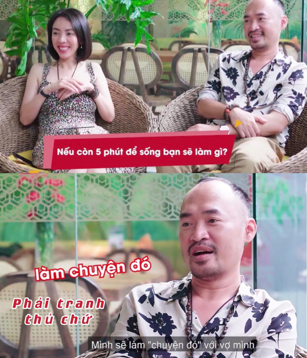 Mới đây, trên một diễn đàn chuyện showbiz bất ngờ đăng tải câu trả lời bá đạo của Tiến Luật khi được hỏi: "Nếu còn 5 phút để sống, bạn sẽ làm gì?". Ngay lập tức, nam diễn viên đã đưa ra phản hồi khiến tất cả phải "choáng váng": "Mình sẽ làm 'chuyện đó' với vợ mình. Phải tranh thủ chứ".