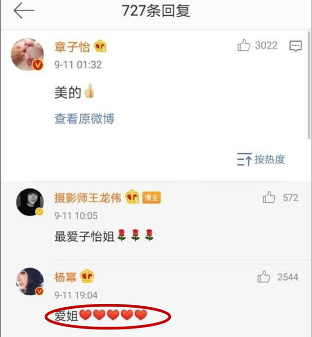Trang QQ cho rằng đây đều là ám hiệu tình yêu giữa 2 người. Tuy nhiên, có netizen nhận xét, thời điểm này mỹ nhân họ Dương không thể tuyên bố chuyện tình cảm bởi sự nghiệp đang gặp khó khăn, chuyện cá nhân cũng gây tranh cãi khi bé Tiểu Gạo Nếp tỏ thái độ ra mặt với cô.