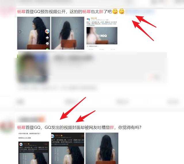 Bên cạnh đó, trong những hình ảnh chụp bóng lưng của Dương Mịch được tạp chí GQ tung ra cách đây không lâu cũng nhận phải nhiều phản hồi trái chiều từ cư dân mạng. Việc chụp phía sau đã khiến Dương Mịch để lộ rõ cánh tay và lưng khá đẫy đà, netizen cho rằng nàng "Bạch Thiển" đã tăng cân khá nhiều và không còn giữ được vẻ thon gọn như ngày trước nữa.