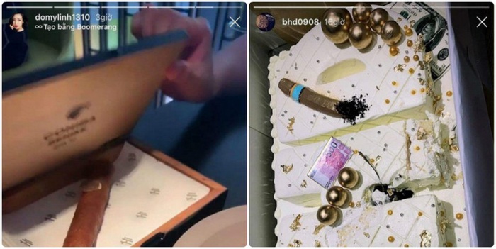 Sau đó trên Instagram của Bảo Hưng đăng tải bức ảnh chụp bánh kem sinh nhật có hình điếu xì gà. Ít lâu sau, Đỗ Mỹ Linh cũng chia sẻ chiếc bánh hình điếu xì gà trên trang cá nhân của mình.