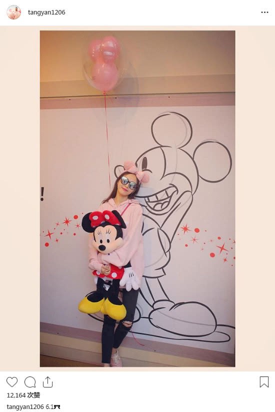 Đường Yên mới đây đã khoe trên trang Instagram cá nhân bức hình được ông xã La Tấn chụp cho. Trong ảnh, Đường Yên đeo tai chuột rất đáng yêu, cô mặc chiếc áo hồng rộng thùng thình và còn ôm một chú chuột Mickey. Giữa loạt tin đồn mang thai, Đường Yên lại mặc áo rộng và còn cố gắng che bụng như thế này khiến netizen xứ Trung càng thêm nghi ngờ hơn.