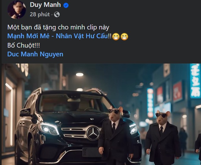 Vào ngày 14/5, Duy Mạnh chia sẻ clip được một khán giả tặng có nội dung nói về việc con chuột làm cháy xe ô tô có logo ngôi sao 3 cánh.