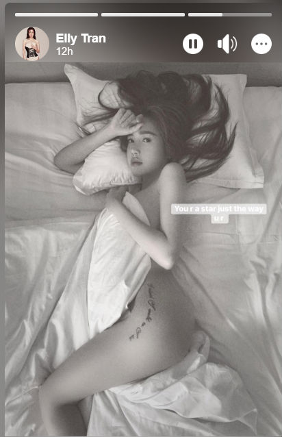Elly Trần vừa cập nhật bức ảnh nude mới lên instagram kèm chú thích: "You're star just the way you are" (Tạm dịch: Bạn là một ngôi sao theo cách của bạn). Bức hình nóng bỏng này ngay lập tức được những người theo dõi instagram của cô bình luận.