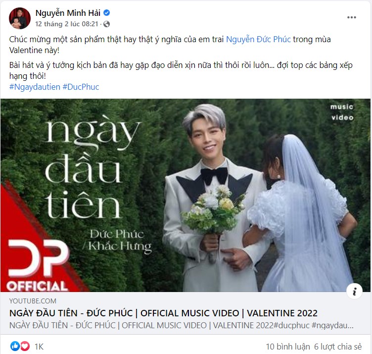 Về phía Minh Hải, anh chưa có bất cứ động thái chính thức nào để phản hồi về nghi vấn chia tay Hòa Minzy. Trên trang cá nhân, nam doanh nhân vẫn nhiệt tình chia sẻ sản phẩm âm nhạc mới nhất của 2 cậu em thân thiết với bà xã là Đức Phúc và Erik.