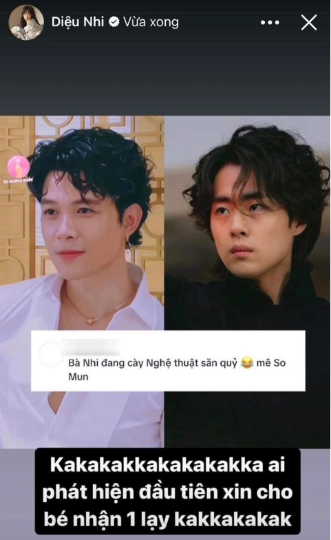 Trong một lần phỏng vấn trước đây, Diệu Nhi từng chia sẻ về việc thường xuyên bắt Anh Tú đổi kiểu tóc giống những diễn viên Hàn Quốc mà cô đang xem. Và hình ảnh mới đây cùng phản ứng của cô nàng cho thấy thói quen đó vẫn tiếp diễn.