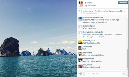 12/01/2015 18:41Fan xôn xao vì Beyoncé đăng ảnh như đang ở Vịnh Hạ Long