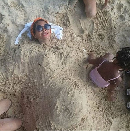 Bên cạnh đó, hình ảnh Beyoncé chơi đùa trên bãi cát trong chuyến đi chơi cũng khiến nhiều người đặt nghi vấn về chuyện cô đang mang thai, bởi bụng của nữ danh ca trong hình trông khá lớn. Trong chuyến đi này, vợ chồng Beyoncé cũng đã mừng sinh nhật thứ 3 của con gái đầu lòng - Blue Ivy.