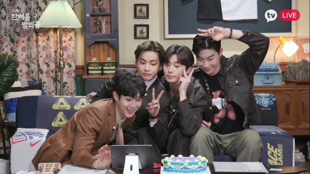 Nói đến hội bạn thân vàng của Kbiz, chắc chắn không thể không kể đến "hội anh em Wooga" của V (BTS), "phó chủ tịch" Park Seo Joon, Park Hyung Sik, tài tử Parasite Choi Woo Sik và nam rapper Peakboy. Vào ngày 5/7, người hâm mộ được dịp vô cùng hiếm hoi chứng kiến hội bạn này tụ họp đông đủ tại fanmeeting online của Choi Woo Sik.