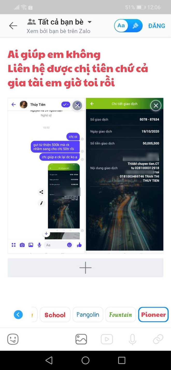 Tiền trong tài khoản đã sử dụng hết cho việc cứu trợ, hoàn trả lại cho bạn thì chị Tiên sẽ sử dụng tiền cá nhân, chỉ cần chứng minh được mình là chủ tài khoản. Trong thời gian qua, không phải chỉ có một lần chuyển khoản của bạn là bị nhầm hay trường hợp chuyển khoản 300 triệu đã công bố trước đó, mà còn một số khác nữa (số tiền nhỏ hơn bạn, hay lớn hơn bạn đều có, xin gửi một vài hình ảnh đã chuyển khoản lại do chị Quỳnh cung cấp, tài khoản này là tài khoản sử dụng việc từ thiện nên chị Quỳnh cùng quản lý và theo dõi). Nhưng tất cả trường hợp bị nhầm trên đều được xác thực, rất thiện chí phối hợp và đã được chuyển hoàn. Còn riêng về phần bạn vẫn chưa rõ ràng ngay từ đầu.