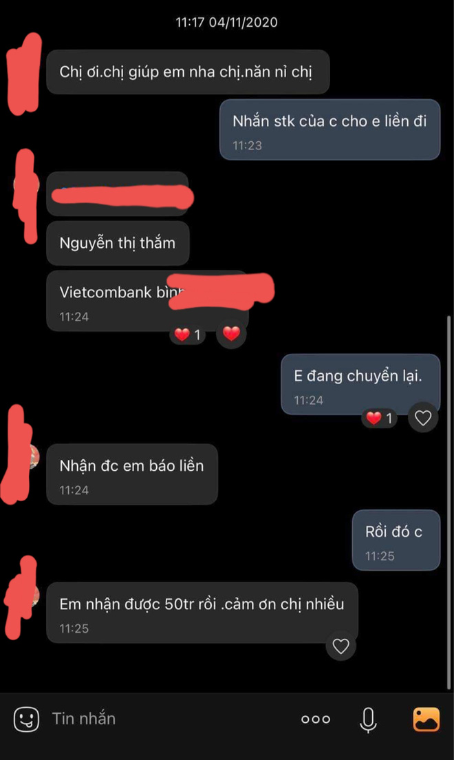 Tụi mình, chị quản lý đều hiểu được việc chuyển tiền từ thiện là từ lòng tốt và muốn giúp đỡ đồng bào miền Trung bị bão lũ. Việc chuyển nhầm là sơ suất và có thể xảy ra. Tuy nhiên, vì xã hội vẫn còn nhiều điều chưa tốt, cho nên mọi việc phải rõ ràng.