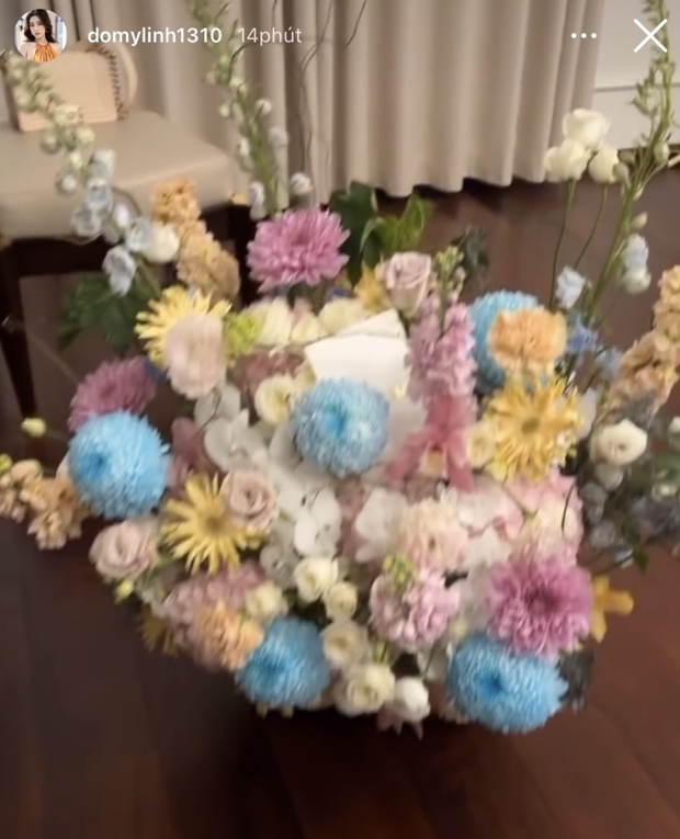 Dù bận công việc nhưng Đỗ Vinh Quang vẫn chu đáo chuẩn bị quà cho bà xã Đỗ Mỹ Linh. Trên trang cá nhân, hoa hậu Mỹ Linh khoe món quà được chồng tặng. Món quà không quá đắt tiền chỉ là một giỏ hoa tươi tắn nhưng cũng làm cho bà xã của chủ tịch đội bóng thủ đô thấy ấm áp.