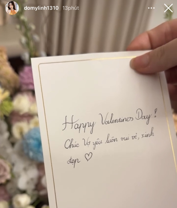 Trong thiệp gửi Mỹ Linh, Đỗ Vinh Quang còn gửi kèm lời chúc ngọt ngào: