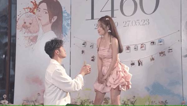 Trước sự chứng kiến của mọi người, Gin Tuấn Kiệt lộ rõ vẻ hồi hộp và bày tỏ tình cảm: "Hôm nay là ngày 27/5 - chuẩn tròn 4 năm mình yêu nhau. Thế nên, anh quyết định dành ngày hôm nay cho em, chúc mừng kỉ niệm 4 năm của chúng ta. Chặng đường 4 năm của mình, em nhớ em đã nói rằng hồi mới quen hổng biết chừng nào mình yêu nhau được 1000 ngày. Hôm nay đã là 1460 ngày rồi, cũng nhiều hen. Hôm nay, anh muốn hỏi em một câu này: 'Em có đồng ý lấy anh làm chồng không?'".