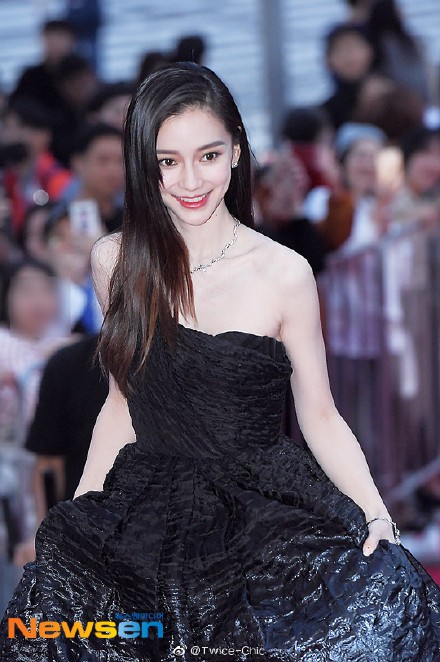 Mới đây, khi tham gia Liên hoan Phim Busan tại Hàn Quốc, khi vừa mới xuất hiện trên thảm đỏ của buổi lễ, Angelababy đã lập tức thu hút sự chú ý của cánh báo chí khi khoác lên mình chiếc váy dạ hội đen vô cùng lộng lẫy. Có thể thấy rằng, dù chụp ở góc độ nào thì cô nàng đều có thể tự tin khoe ra được toàn bộ ưu điểm của mình với đường nét sắc sảo và làn da mịn màng.