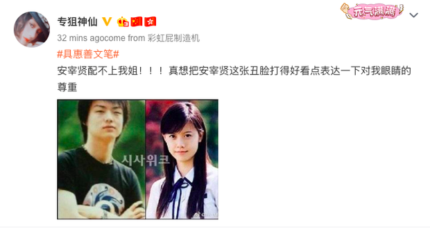 Trong khi đó, trên mạng xã hội Weibo, loạt hình ảnh ngày xưa của Goo Hye Sun bất ngờ hot trở lại, cùng với đó là màn so sánh với nhan sắc của Ahn Jae Hyun. Nổi tiếng là một trong những ulzzang đình đám, Goo Hye Sun quả thực sở hữu nhan sắc trời phú, hoàn toàn đối lập với ông xã.