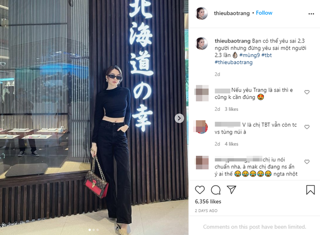 Giữa lúc nghi vấn tái hợp vẫn còn đang bỏ ngỏ, người hâm mộ lại "đào mộ" dòng chia sẻ của ca sĩ Thiều Bảo Trang - chị gái Thiều Bảo Trâm cách đây 2 ngày. Cụ thể, nữ ca sĩ đưa ra nhận định: "Bạn có thể yêu sai 2, 3 người nhưng đừng yêu sai một người 2, 3 lần".