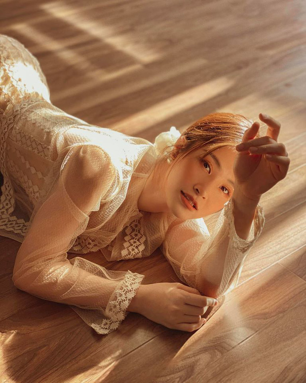 Nữ ca sĩ hi sinh lăn lộn trên sàn nhà tầng gác mái để bắt được khoảnh khắc đón nắng. Và vòng eo của Đông Nhi lại một lần nữa thành tâm điểm chú ý.