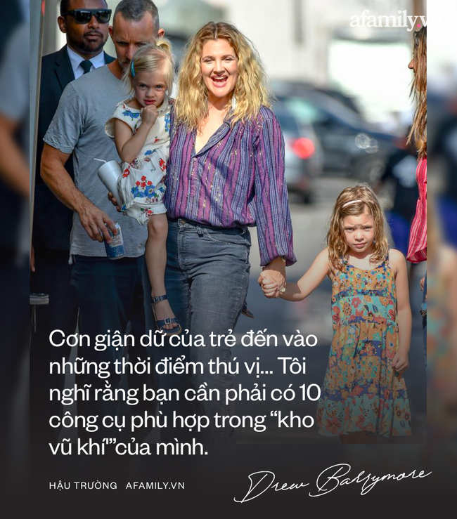 Drew Barrymore có "vũ khí bí mật" để đối phó với những trận ăn vạ của hai con. Nữ diễn viên từng chia sẻ rằng: "Chỉ cần đứng lại và chụp ảnh vui nhộn". Drew Barrymore cho biết, một lần cô con gái Olive của mình bất ngờ ngã lăn ra đất khóc lóc chỉ vì muốn đuổi theo chú chim ở công viên Disney. "Cơn giận dữ của trẻ đến vào những thời điểm thú vị nhất mà bạn không thể dự đoán được. Tôi nghĩ rằng bạn cần phải có 10 công cụ phù hợp trong 'kho vũ khí' của mình. Đó là một trong hai cách tiếp cận: 'Nhẹ nhàng' hay 'nghiêm trọng'".